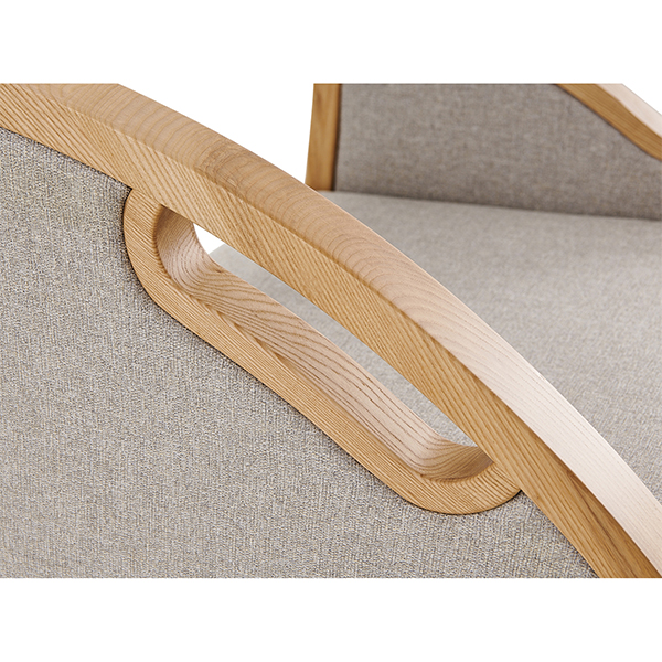 【材質(zhì)說(shuō)明】: 扶手外框采用A級(jí)白蠟?zāi)局谱鳎痉鍪纸?jīng)開(kāi)料、造型、打磨、噴漆制作;座背軟包可選配布紋及皮革軟包。