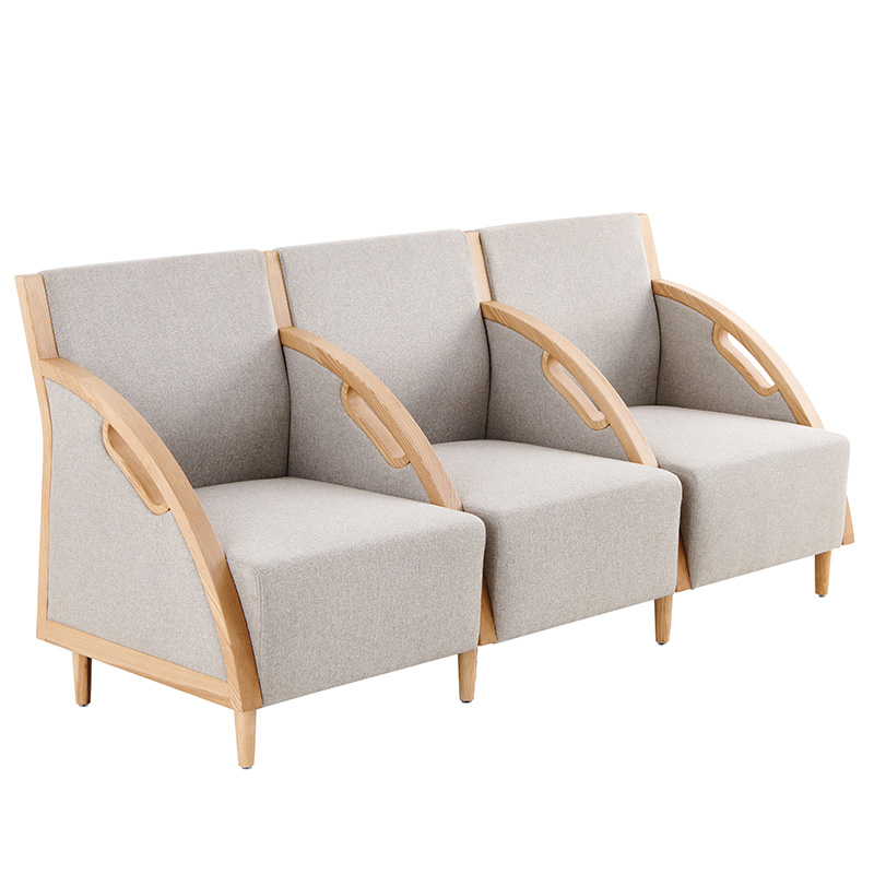 【材質(zhì)說(shuō)明】: 扶手外框采用A級(jí)白蠟?zāi)局谱鳎痉鍪纸?jīng)開(kāi)料、造型、打磨、噴漆制作;座背軟包可選配布紋及皮革軟包。