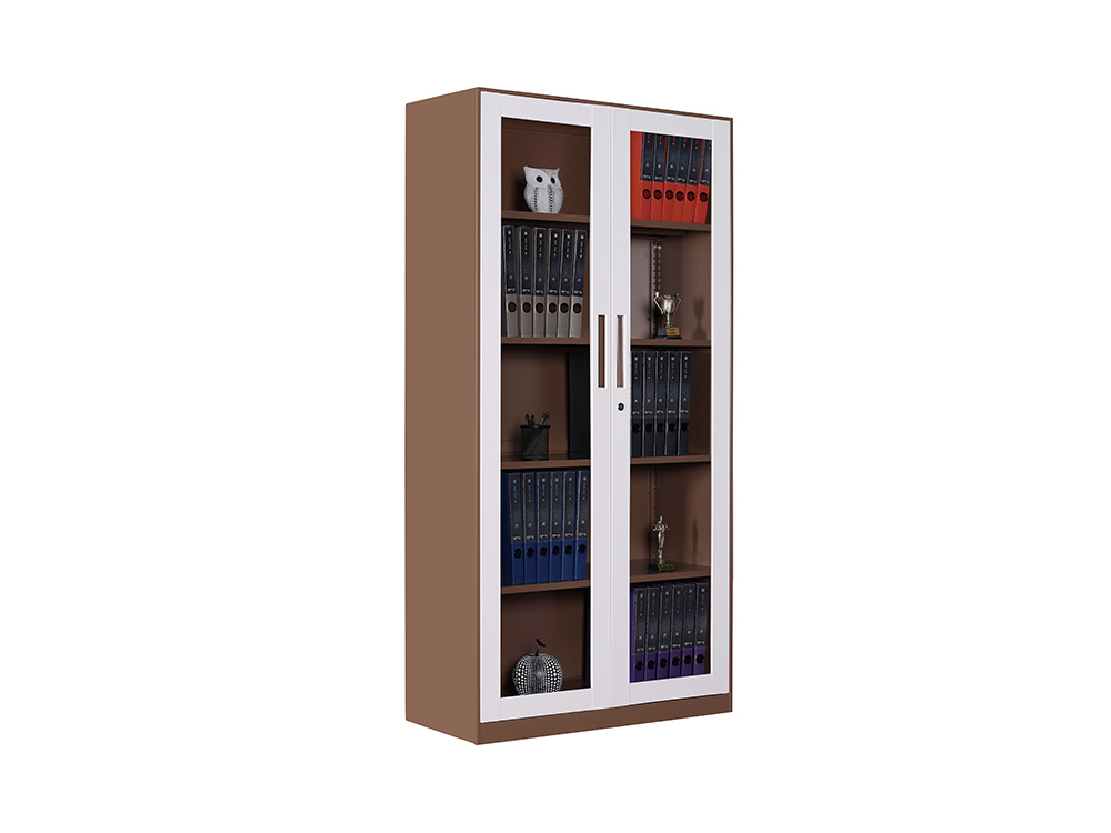 ● 一體結(jié)構(gòu)設(shè)置,上部玻璃對(duì)開門,內(nèi)置1層層板可調(diào)高度,內(nèi)置物品可視,便于拿取,中間2個(gè)抽屜,下部對(duì)開鐵門、門內(nèi)一格板,設(shè)置有拉手和鎖。
