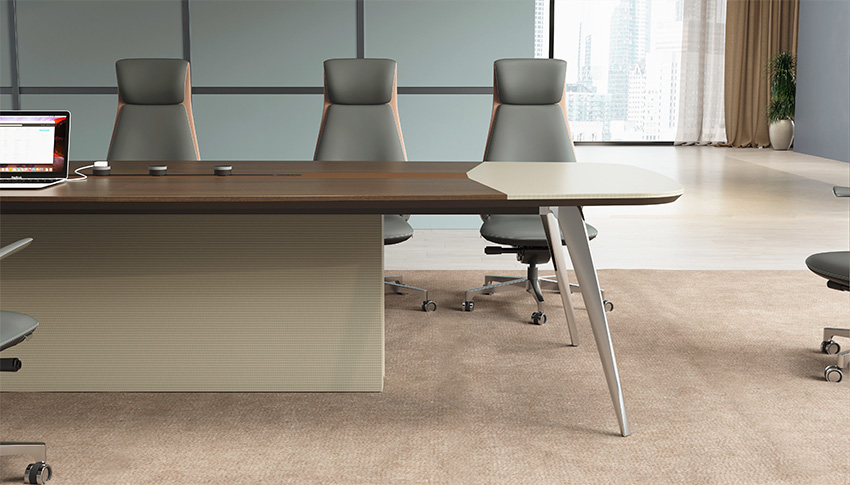 賓利系列產(chǎn)品外觀采用意式輕奢的設(shè)計風(fēng)格,主附臺面一體化,雙層面板,整體造型全方位的意式切割風(fēng)格,體現(xiàn)了產(chǎn)品造型的不對稱美,主附配置大小八字鋼腳讓整個產(chǎn)品既有質(zhì)感又有美感,加上產(chǎn)品搭配爵士胡桃與條紋蘆灰的配色,充分體現(xiàn)產(chǎn)品高品位的氣質(zhì),是現(xiàn)代都市辦公空間最佳選擇之一