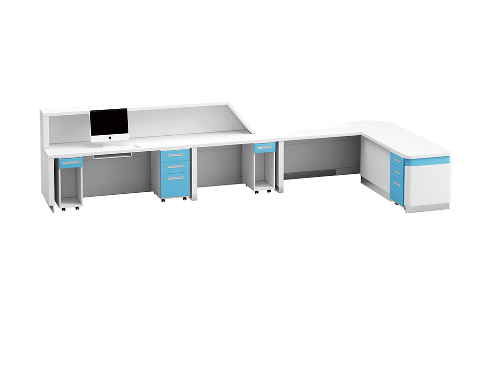 ● 護(hù)士站整體柜采用上海“寶鋼”品牌secc電解鋼板,骨架鋼板厚度≥1.8mm,護(hù)板鋼板厚度≥1.0mm,電解鋼板是一種優(yōu)良的金屬材料,表面光滑、平整,不易損傷,電解鋼板是在冷軋鋼板基礎(chǔ)上深加工電解上一層鋅,相比冷軋鋼板電解鋼板具有防銹的功能,暴露在空氣中和遇水都不會(huì)生銹。地腳采用≥1.0mm 304不銹鋼地腳,比柜體前段面縮進(jìn)尺寸為23mm,高度為100mm,操作時(shí)無抵腳感,符合人體工程學(xué)原理。