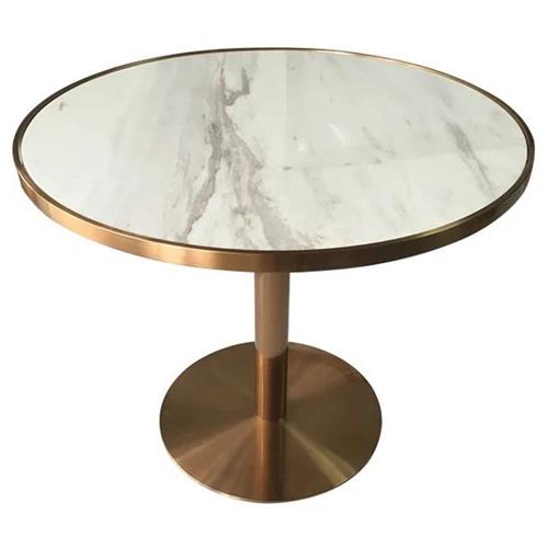 產(chǎn)品材質(zhì):不銹鋼桌腳+不銹鋼邊框鑲嵌大理石臺(tái)面