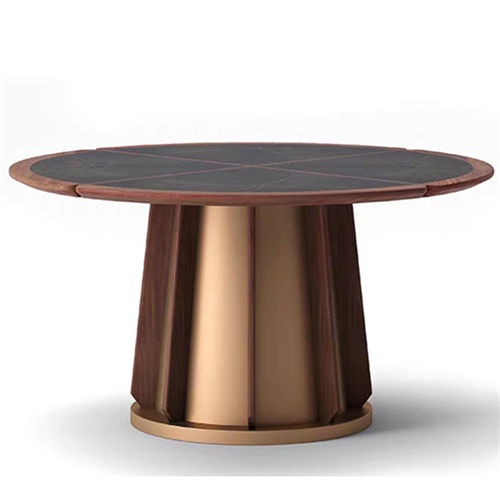 餐廳家具廠家為您展示現(xiàn)代中式餐廳包房鈦金不銹鋼巖板圓桌圖片展示\價(jià)格說(shuō)明\定做服務(wù)。